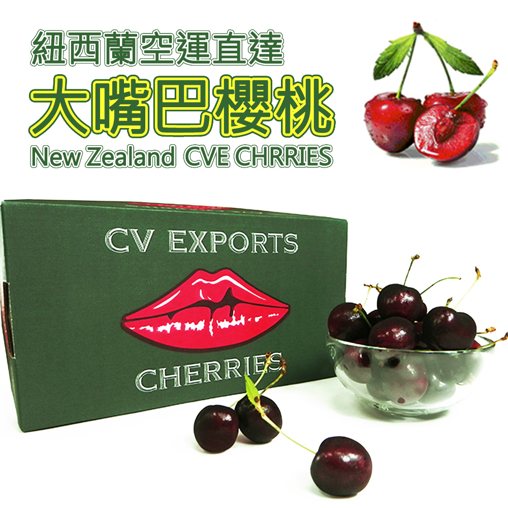 台灣紅達人嚴選CVE紐西蘭大嘴巴櫻桃是櫻桃界裡的LV,也是紐西蘭品質最頂級、人氣最高的櫻桃,只有唯一沒有之二。吃櫻桃首選就是要"新鮮",限時空運紐西蘭CVE大嘴巴櫻桃,保證不會讓您吃到藥水味。極鮮綠的櫻桃梗加上Q彈的肉質,又硬又脆又不酸,很適合所有人吃。