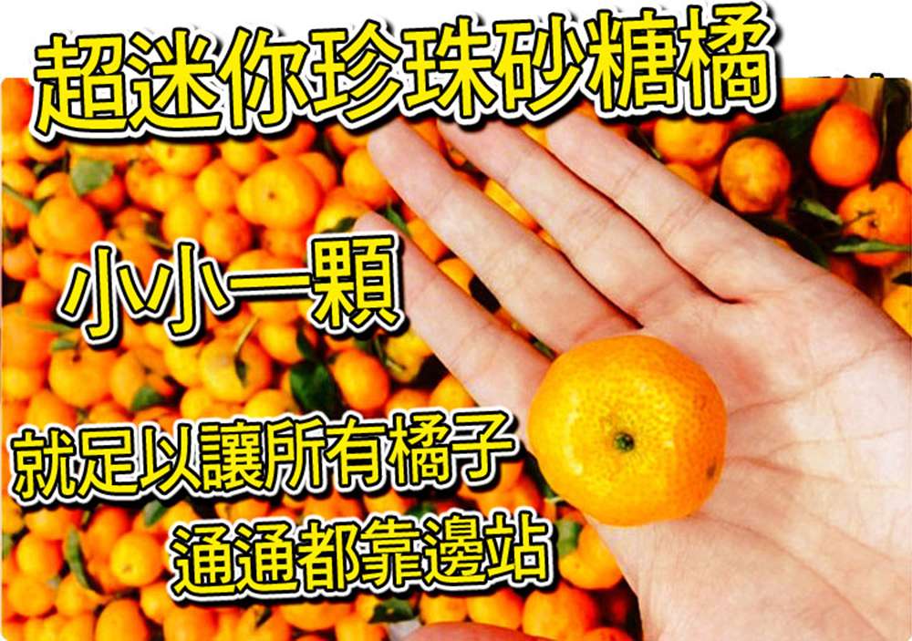 入冬是橘子開始盛產的季節,台灣寶島橘子品種有千百萬種,最不引人注目的就是這小小一顆迷你的珍珠砂糖橘,放在手上還不到手心大小呢!!可是大俠們,您千萬別看他這麼小小一顆的毫不起眼,嚐起來不只香氣濃,甜度更是高到極點,當這迷你珍珠砂糖橘擺在您眼前時,您一定會欲罷不能的一顆接著一顆,令人愛不釋手,因為它實在是好香好甜太好吃了~~~